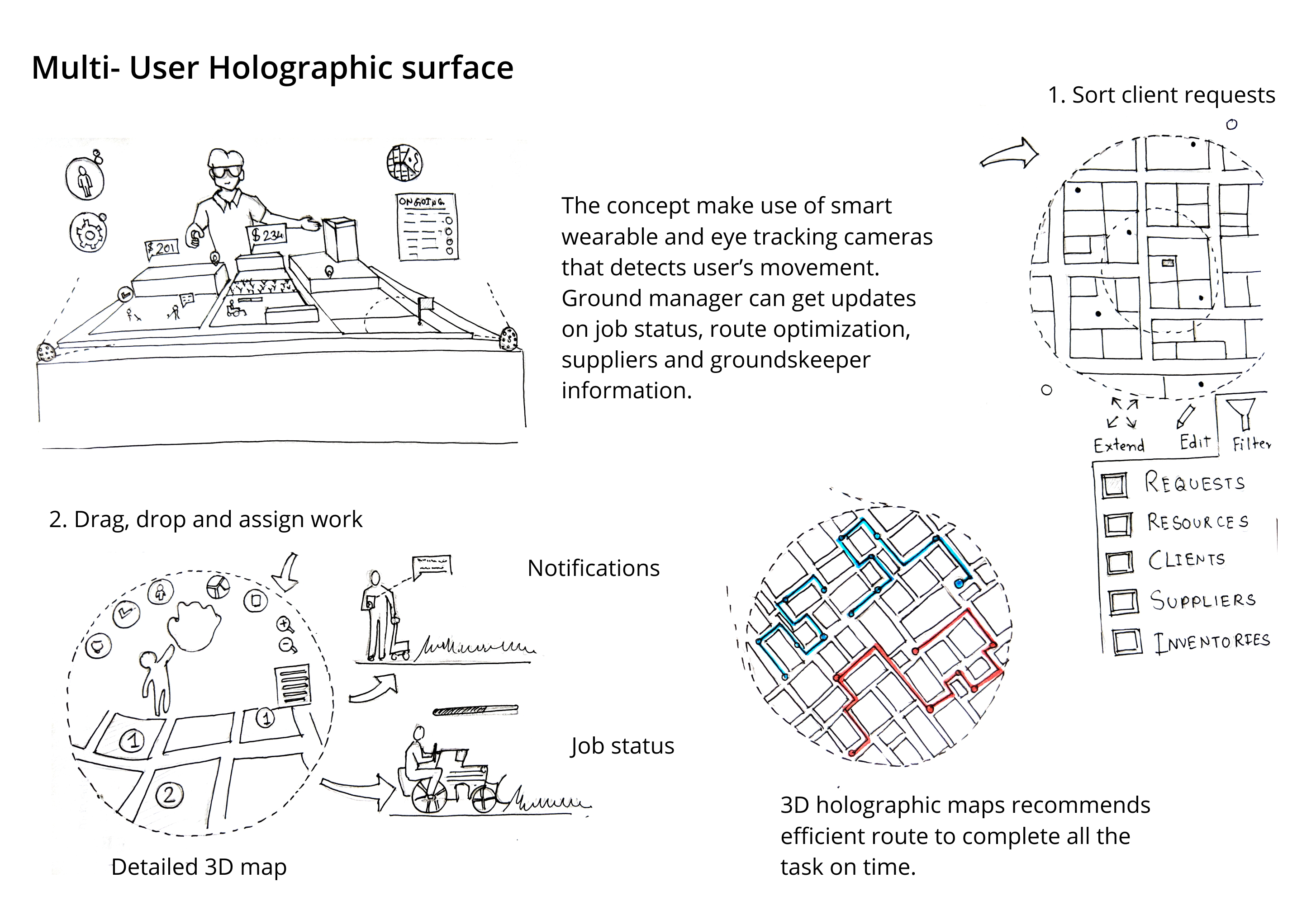 User has to calculate the efficient route everyday using ‘mapquest’ and google maps to avoid traffic and travel time thus achieving efficiency. If there are new client requests, Ground Manager has to find a suitable team for it and then rework the optimized route for that team