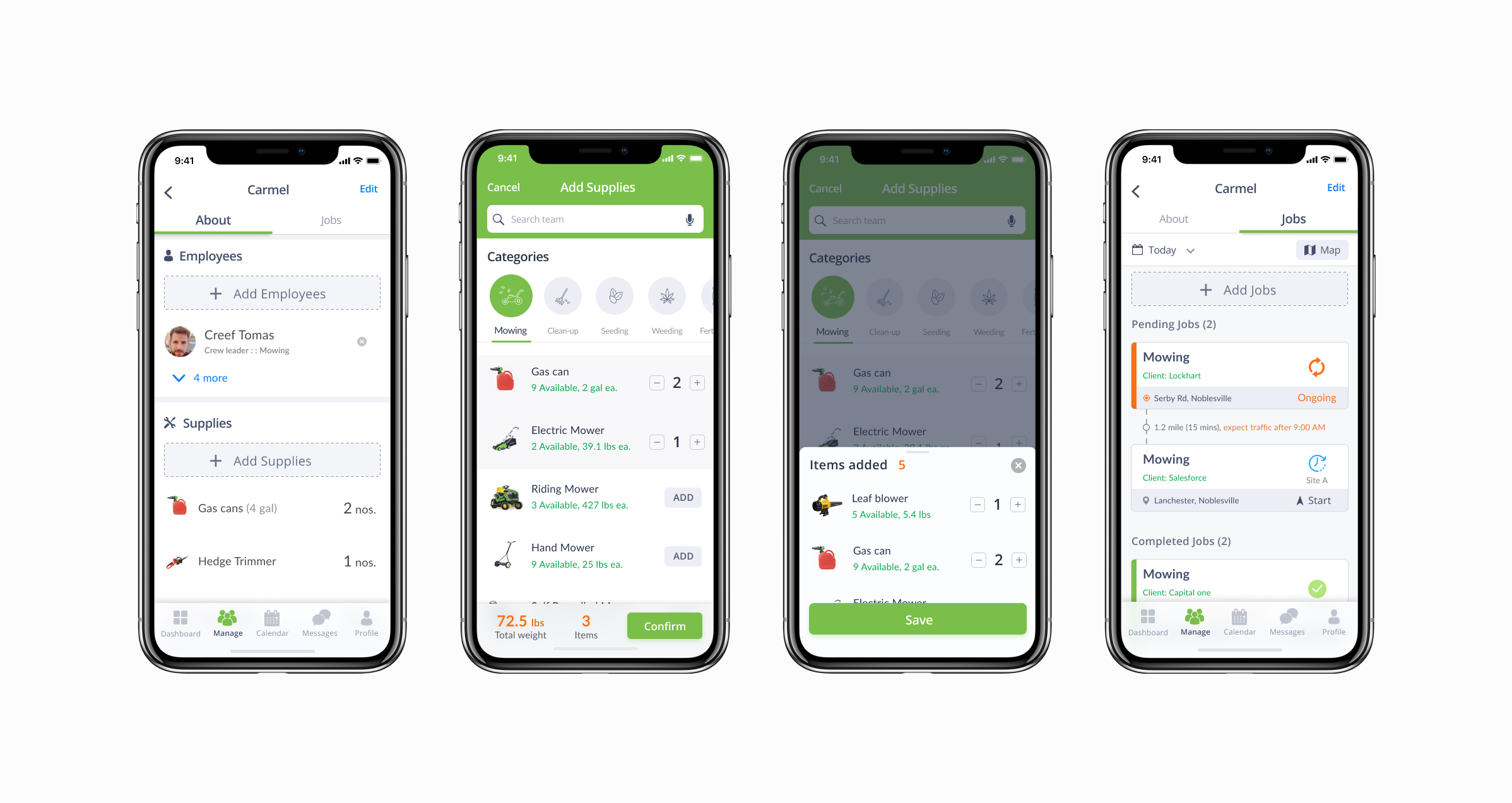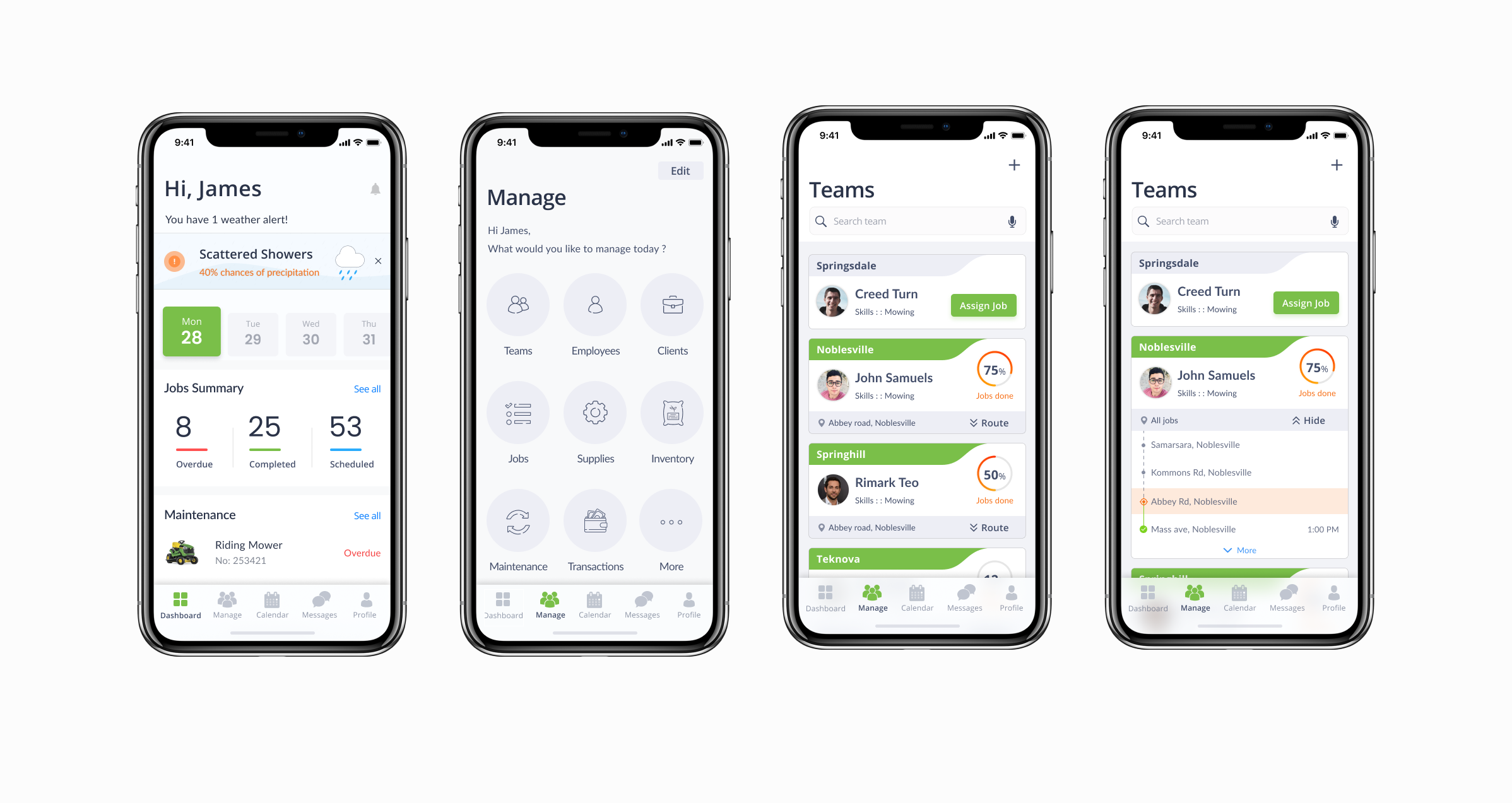We designed a mobile application for lawn care companies to help them with creating and monitoring teams and their jobs, easily notify their employees to carry equipment on site for all the jobs, manage new and existing clients or jobs on daily basis and help employees update their job status.
